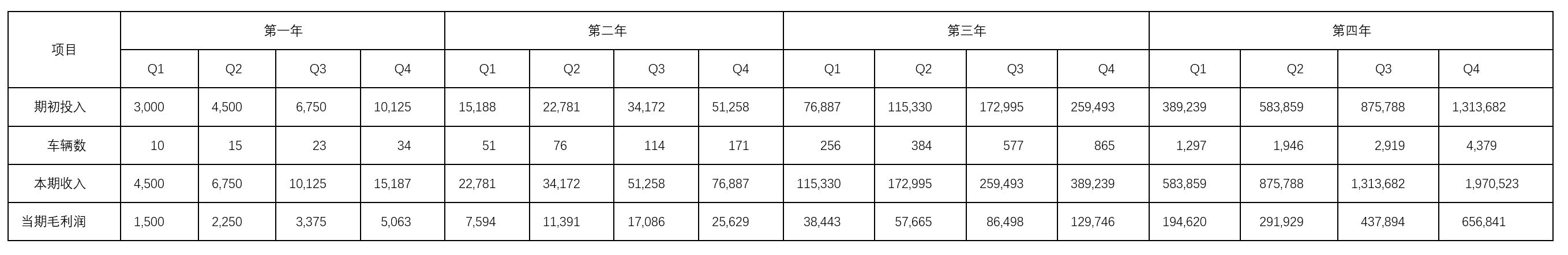 假如花3000元購(gòu)置10輛單車,將第一季度4500元(其中有1500元是毛利)用來(lái)購(gòu)置15輛新車,第二季度租金收入提高到6750元,還是全部用來(lái)購(gòu)車……滾動(dòng)發(fā)展到第16個(gè)季度初,竟然可用131.4萬(wàn)資金購(gòu)買4379輛新車,季度營(yíng)收197萬(wàn)。如果就此收手,197萬(wàn)就可以拿回家!