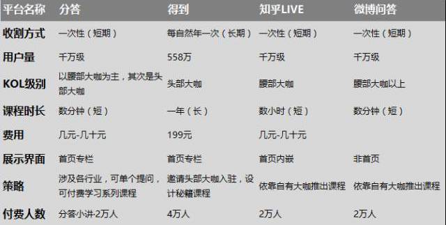 長(zhǎng)板是——大咖坐陣,課程系統(tǒng)全面,獨(dú)立APP,單個(gè)KOL的付費(fèi)人數(shù)領(lǐng)先其他平臺(tái)。