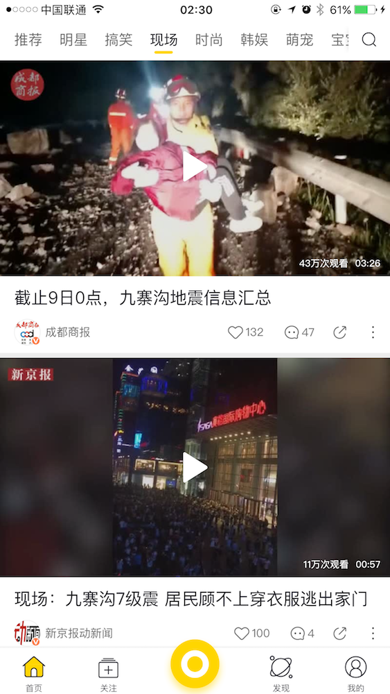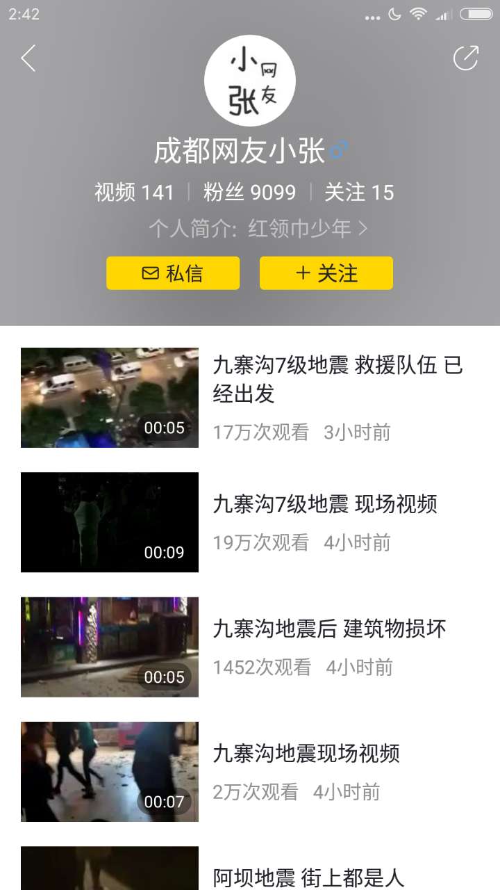 而快手、秒拍等視頻社交平臺上也在實時推薦災情視頻條目: