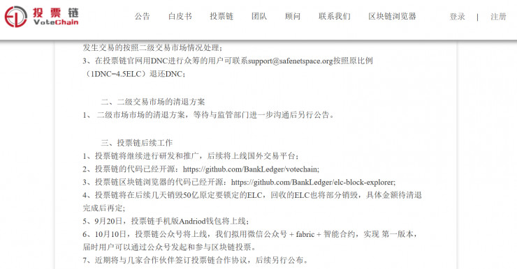 投票鏈更是直接公布了它的出海計(jì)劃。公告說(shuō)明了ICO全渠道的清退方案,以及二級(jí)交易市場(chǎng)的清退方案還要與監(jiān)管部門(mén)進(jìn)一步溝通確定。然后指出,“未來(lái)會(huì)繼續(xù)進(jìn)行研發(fā)和推廣,后續(xù)將上線(xiàn)國(guó)外交易平臺(tái)”。