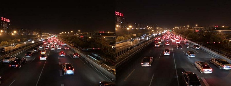 iPhone X帶來的更大改變是夜景甚至弱光下的成色,以下面兩張圖為例,很明顯,iPhone X針對對向車輛的處理要更穩(wěn)一些。