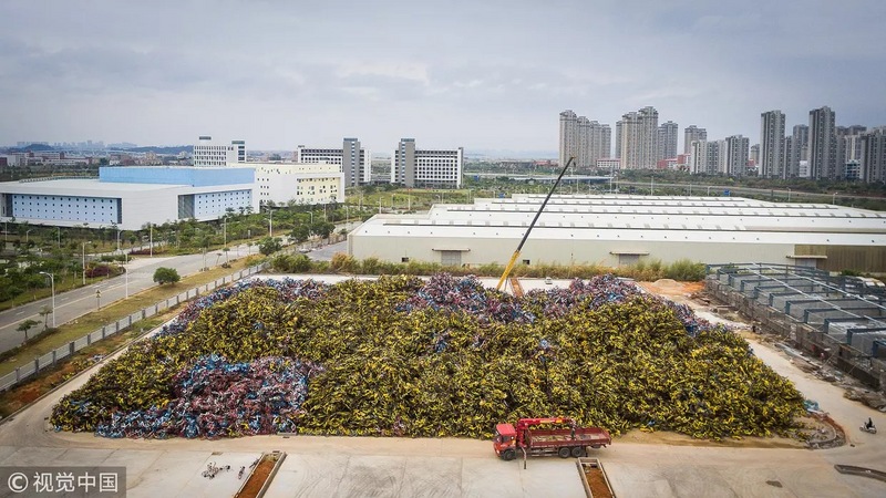 共享單車堆積如山 圖片來(lái)自視覺(jué)中國(guó)